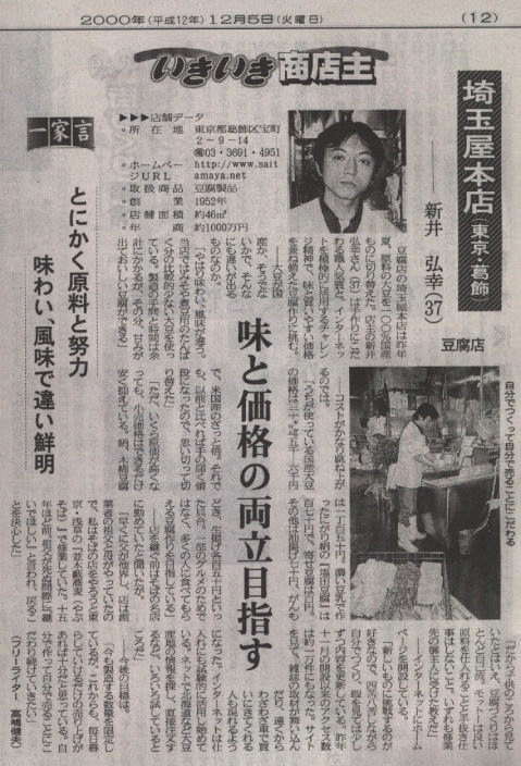 貴誌に掲載していただいた事を励みにこれからも豆腐造りに精進して行く